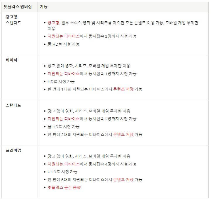- 광고형 스탠다드 요금제와 달리 광고가 없으며 FHD 지원합니다.